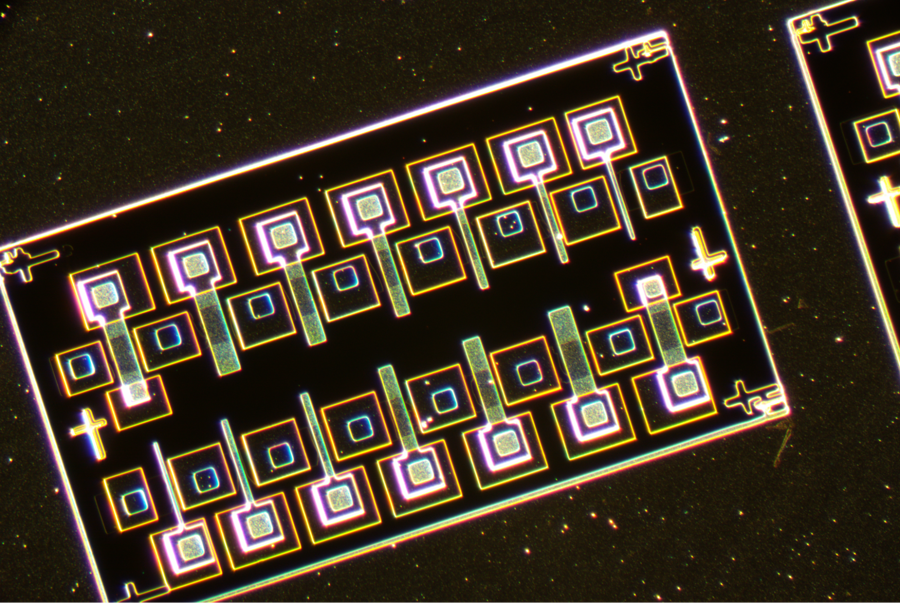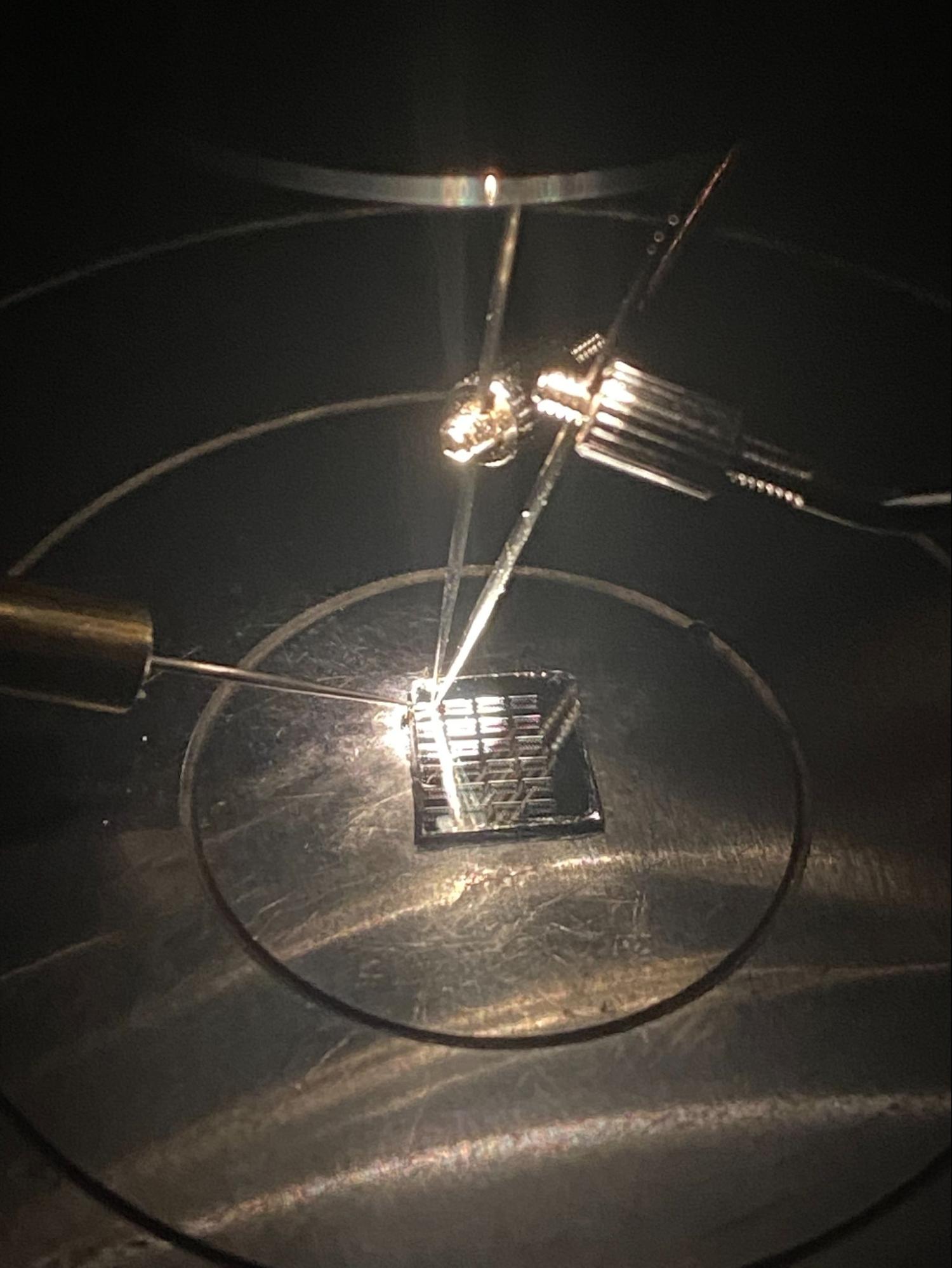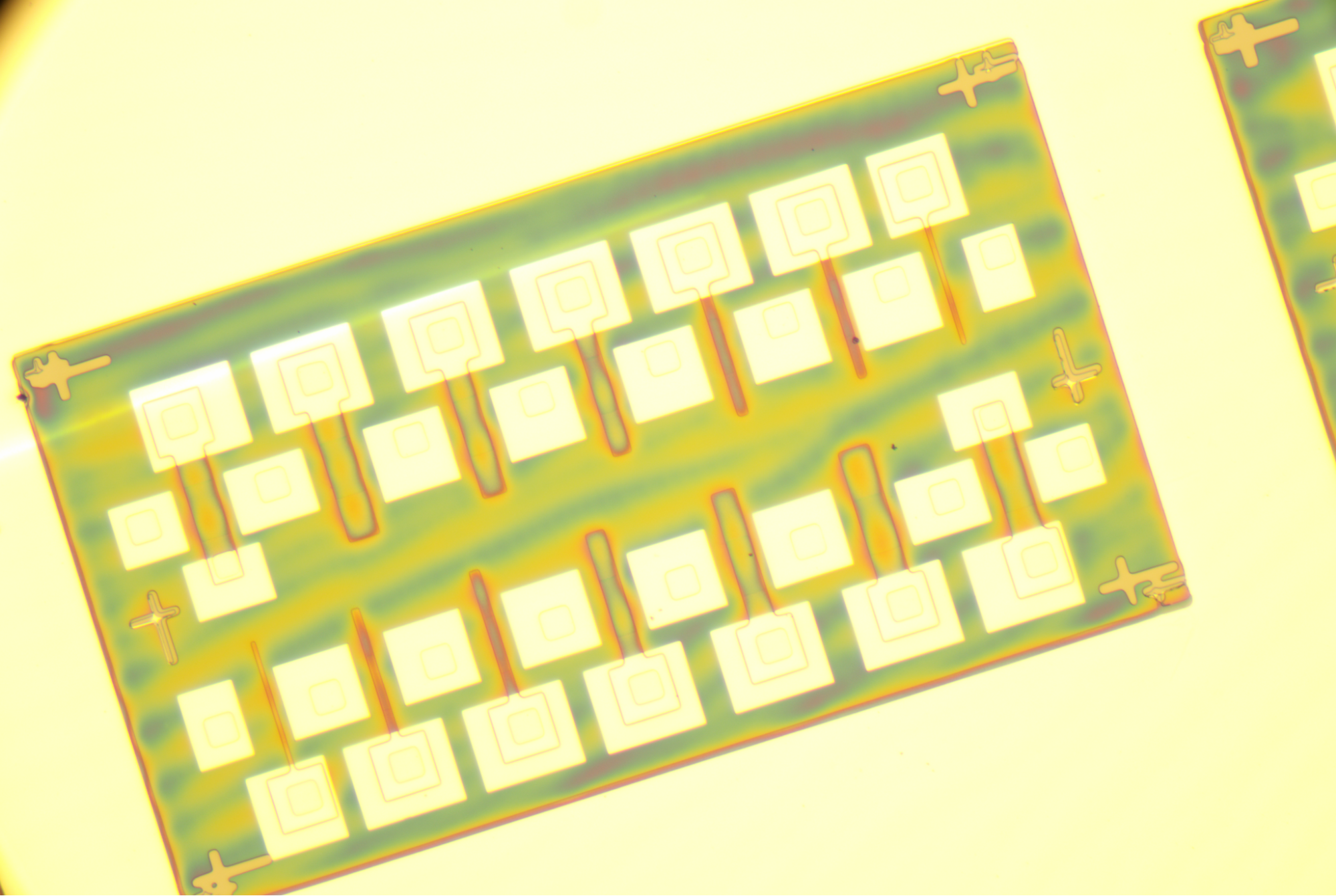 Lithography was one of the most time-intensive stages of the process, along with probing. Misalignment between the gate, source, and drain patterns was observed in some devices, but overall everything looked good.