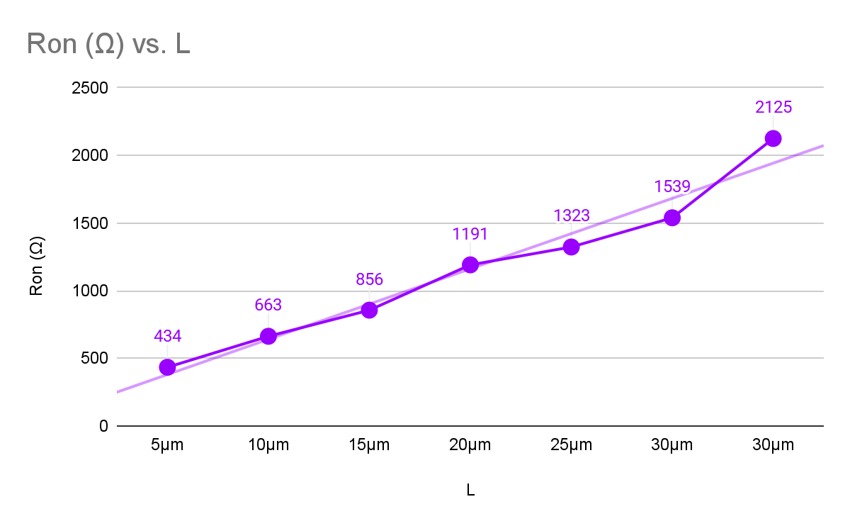 Chip 50: Ron = 5 V / 3.277 × 10⁻³ A = 1525.7 Ω