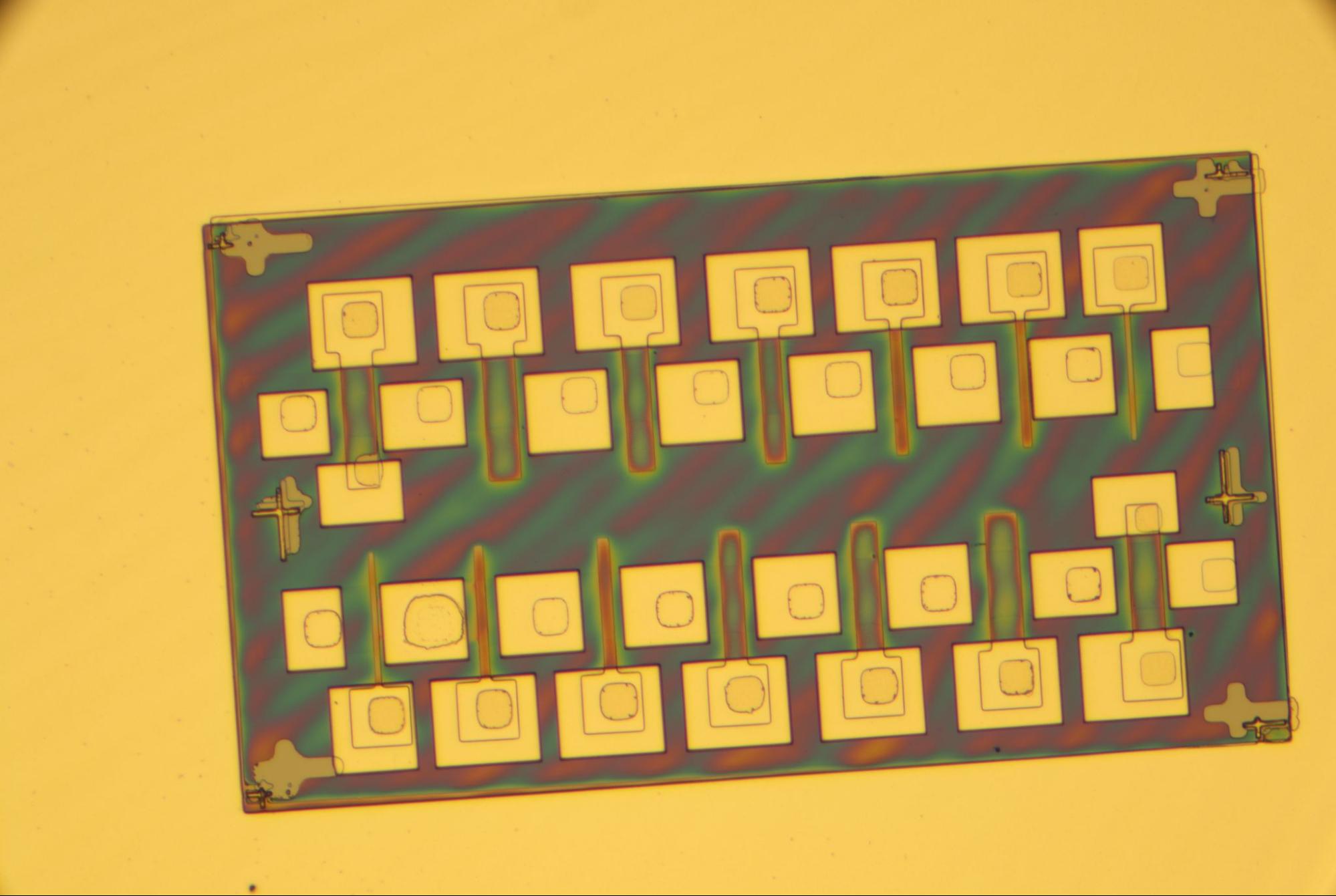 Lithography was one of the most time-intensive stages of the process, along with probing. Although Misalignment between the gate, source, and drain patterns was observed in some devices, overall, everything looked good.